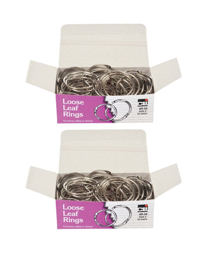 Versatile rings feature precision snap lock closures. Ideal for samples, swatches, loose-leaf material and more. Bright nickel-plated rings are rust-proof. Rings measure 2" diameter. Each box includes 50 rings. Sold as a set of 2 boxes, 100 rings total.
