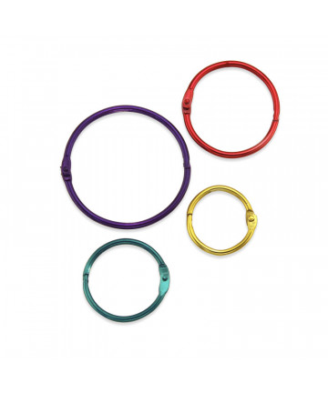 Book rings are the sure fast method of keeping things together. These binding rings are made with smooth and tough steel coating that ensures that your binder rings won't crack or chip. Durable metal book rings can be used for a huge assortment of projects as well as conveniences around the home and classroom. That's right, book rings are not just good supplies for the office anymore. Make fun and user-friendly projects such as calendars, fabric swatch holders, mini scrapbooks, key rings and recipe books using these nifty binder rings. Binding rings are just the right things for creating your very own motion and flip books, and rings that bind are perfect for projects such as baby books or scrapbooks because they offer the flexibility and room for adding more pages in the future. Use your sturdy binding rings to hang up signs and notices or even to keep important papers, game pieces or scraps together. The easy to open clasp mechanism is equally simple to close, and, yet, locks securely and holds strong every time. A rust free metal book ring from Hygloss is meant to last through heavy duty usage and can stand up to wear and tear. This pack of rings are 2" and come in unique metallic colors. Each pack includes 50 rings. Sold as 2 packs for a total of 100 rings.
