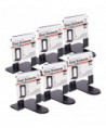 Heavy gauge steel with reinforced ribbing. Smooth coined edges provide extra safety. Comes with a non-skid poly base, which prevents slipping and scratching. 5" height. Each set includes 2 bookends. Sold as 6 sets for a total of 12 bookends.