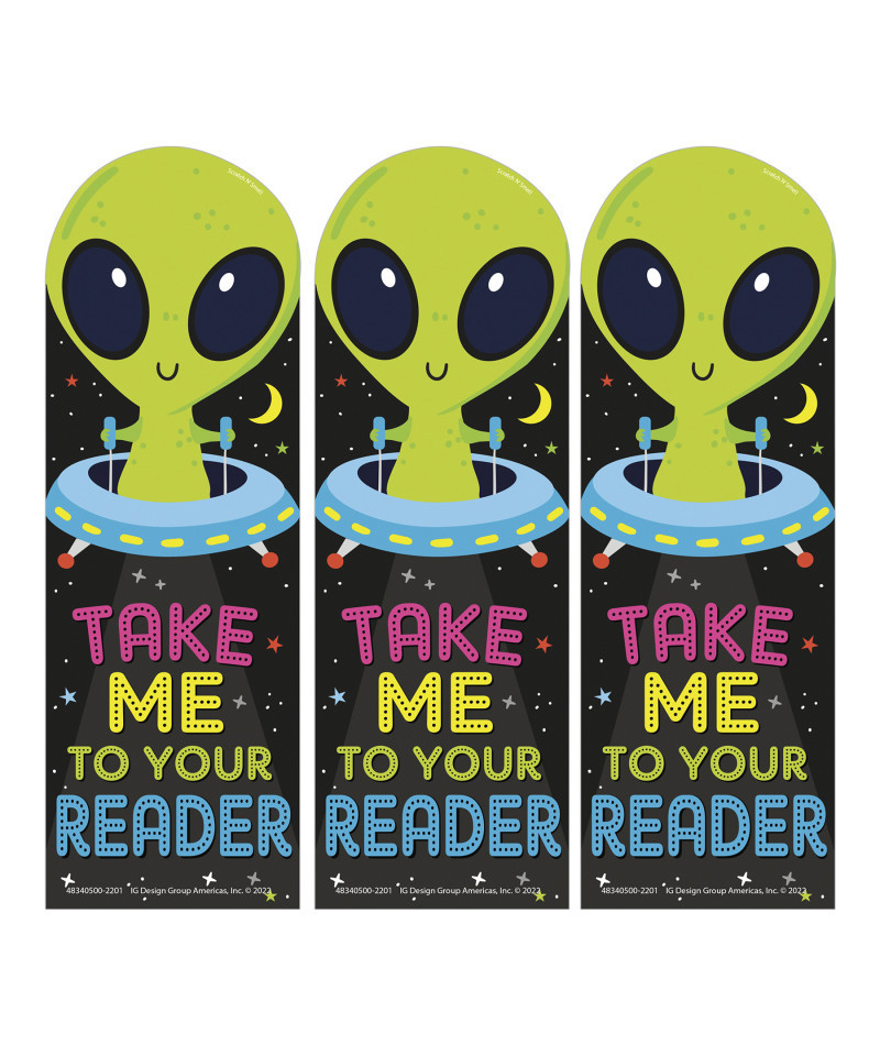 Fun and colorful Eureka Scented Bookmarks with a long-lasting smell help make reading even more fun! These scented bookmarks are a great way to encourage young bibliophiles of all ages to stay motivated, exceed reading goals, achieve personal goals, succeed in class, or encourage a positive attitude towards reading. The fun alien character will encourage kids to be 'out of this world' readers! Each bookmark measures 2" x 6". For best results, scratch scented area of bookmark to release scent. Each pack includes 24 green apple scented bookmarks. Sold as 3 packs for a total of 72 bookmarks.