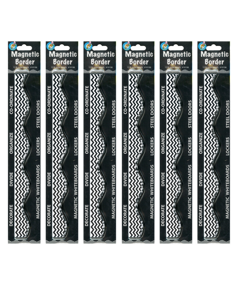 Ashley Productions® Magnetic Border, Black Chevron, 12 Feet Per Pack, 6 Packs