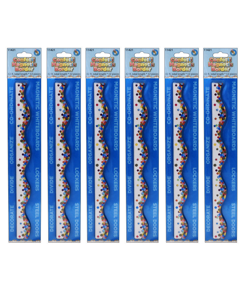Great for decoration in the classroom or at home! Mix or match with coordinating decor! Use on magnetic whiteboards, steel lockers, refrigerators, and more. Wipe clean with damp cloth. Each piece measures 1" x 12". Each pack includes 12 pieces, for a total of 12 feet. Sold as 6 packs for a total of 72 pieces (72 feet).