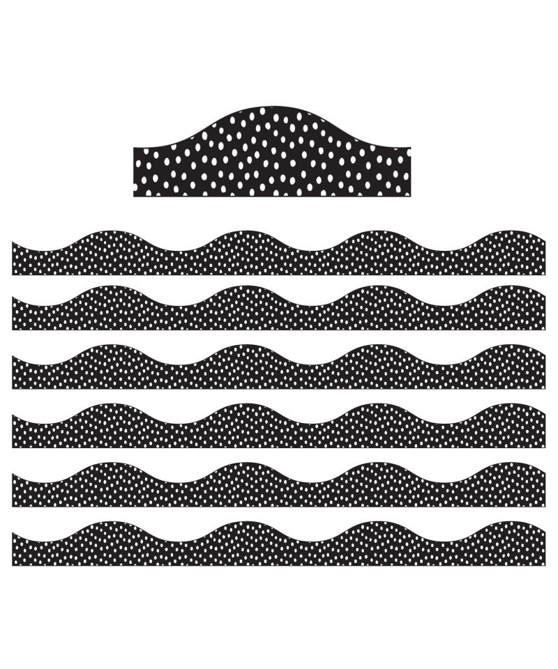 Ashley Productions® Magnetic Scallop Border, White Messy Dots on Black, 12 Feet Per Pack, 6 Packs