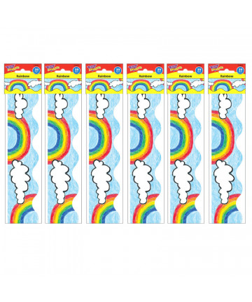 Celebrate the 45th Anniversary of The Very Hungry Caterpillar with this straight-edged border featuring artwork from The World of Eric Carle. Showcase displays, class creations, bulletin boards, windows, student work, and more with the versatile two-sided border. Their straight edges are perfect for continuity and their new, two-sided design makes it easier than ever to coordinate your whole classroom. Each pack includes 12 strips measuring 3' x 3" for 36 feet. Sold as 6 packs for a total of 216 feet of border.