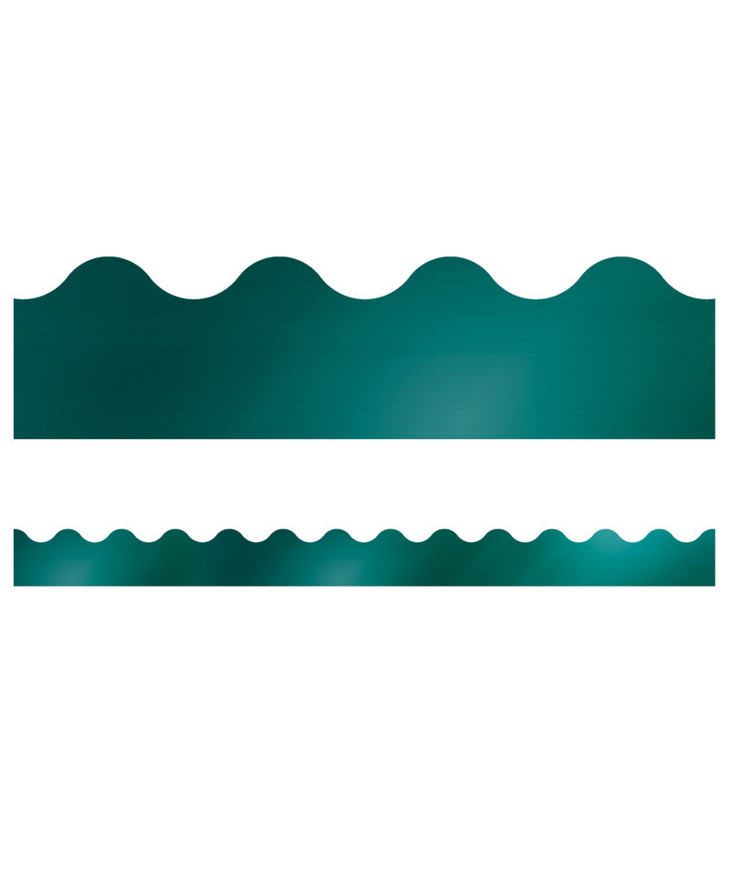 Give your bulletin board displays the perfect finishing touch with eye-catching border trim. This pack of Sparkle + Shine Teal Foil Scalloped Borders includes 13 border strips, each measuring 3' x 2.25" for a total length of 39'.