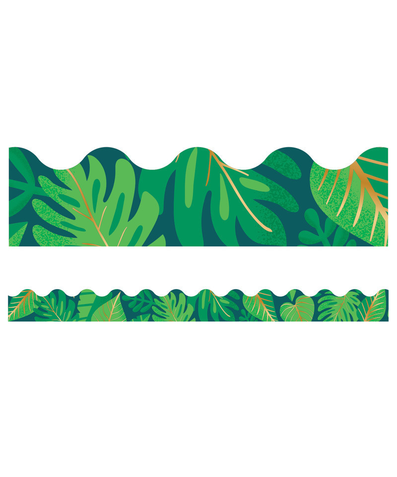 Bring the feel of the tropics to your classroom! Give your bulletin board displays the perfect finishing touch with eye-catching border trim. This pack of One World Tropical Leaves Scalloped Borders includes 13 border strips, each measuring 3' x 2.25" for a total length of 39'.