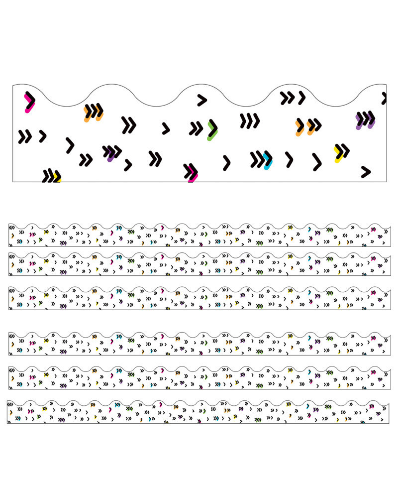Great for year-round use, these scalloped borders offer a glamorous touch of style. Printed on thick but flexible paper, these ready-to-use borders for the classroom are easy-to-customize and add the perfect touch of style to bulletin boards, desks, storage, and so much more. Cut and layer borders to add dimension or use individually for a classic style. Make sure to check out coordinating Kind Vibes products to create a cohesive classroom theme.