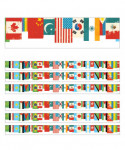Give your bulletin board displays the perfect finishing touch with eye-catching border trim. These eye-catching borders feature a colorful lineup of flags from around the world to signify the diverse backgrounds of any community. Each All Are Welcome Flags Straight Borders pack includes 12 border strips, each measuring 3' x 3" for a total length of 36 feet per pack. Sold as 6 packs for a total of 72 strips (216 feet).