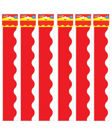 Perfect to use alone or in layers, these scalloped borders come in packs of thirteen 3' x 2.25" strips for a total length of 39 feet per pack! The strips are great for framing your bulletin boards and windows or for complementing charts and class creations. Borders are available in a variety of colors, styles, sizes, and prints to suit any classroom theme! Each pack includes 13 strips. Sold as 6 packs for a total of 78 strips (234 feet) of border.