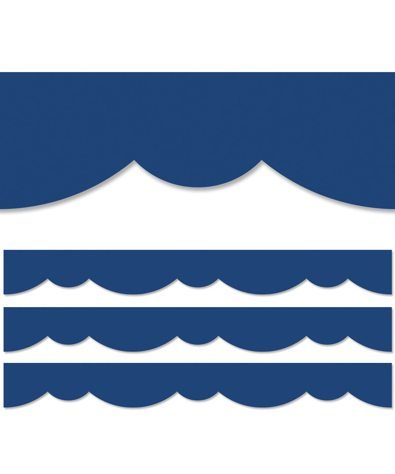 - Blue Stylish Scallops Border features a playful double scallop design to create a neat and easy way to edge any bulletin board or classroom display