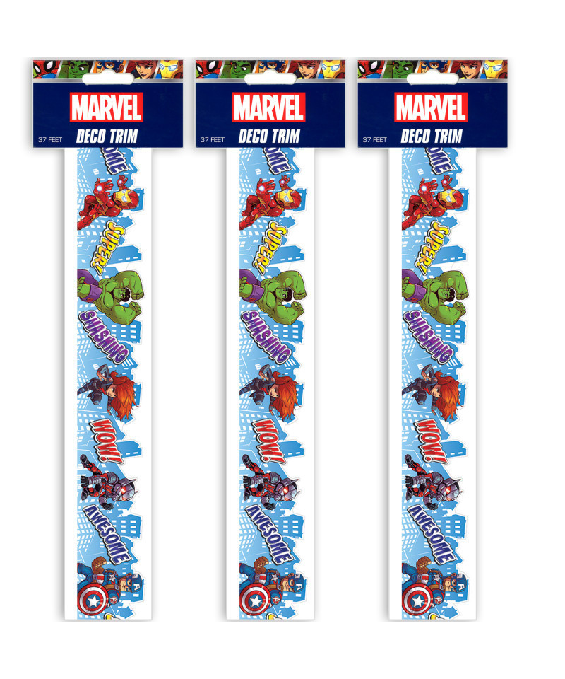Use Eureka School Extra Wide Deco Trim® to add a finishing border to your displays, windows, doorways or chalkboards. Vibrant colors plus a variety of styles and themes can add creativity to displays, windows, chalkboards and more. Each package contains 12 strips (each 37" long x 3.25" wide) for a total of 37 feet. Sold as 3 packs for 36 strips (111 feet) total.