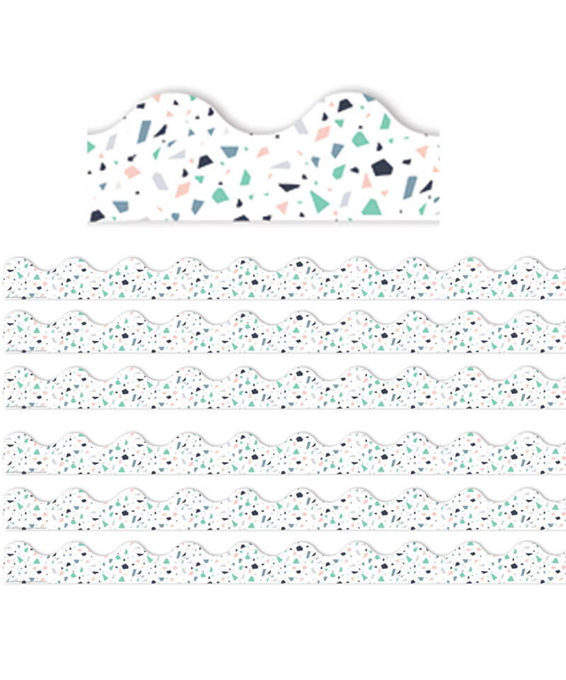 Use Eureka School Deco Trim® to add a finishing border to your displays, windows, doorways or chalkboards. Vibrant colors plus a variety of styles and themes can add creativity to displays, windows, chalkboards and more. Each pack includes 12 strips (each measuring 2.25" x 37") for a total of 37' of trim per pack. Sold as 6 packs for a total of 72 strips (222 feet).
