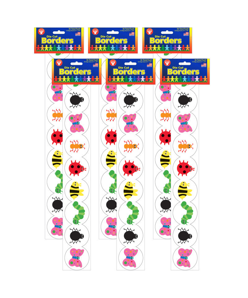 There's nothing like a colorful assortment of cute bugs to form our Bugs Bulletin Board Borders. Get ready for itsy-bitsy style as you coordinate your entire classroom with these adorable, colorful bugs! With bright green caterpillars, friendly ladybugs, happy butterflies and other sweet creatures, your room will be buzzing with excitement for learning. Each pack includes 12 strips measuring 3" x 36", for a total of 36 feet of border. Sold as 6 packs for a total of 72 strips.