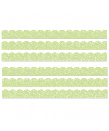 - Pre-cut, scalloped trim works with any bulletin board or display space. Attach with tape or staples.