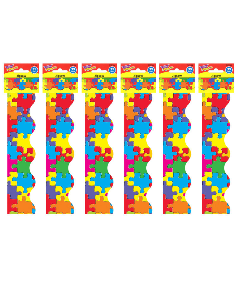Vibrant, contemporary designs create warm, inviting spaces, tickle imaginations, and bring learning to life! Layer patterns on solids, sparkles, or metallics; or use as-is to showcase student work in style, make funky crowns and bookmarks, and engage and delight. The perfect finishing touch for whiteboards, reward charts, calendars, any display. Durable and reusable. Includes 2.25" x 39' per pack. Sold as a set of 6 packs, 234 feet total.
