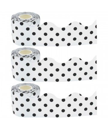• Pre-cut, scalloped trim works with any bulletin board or display space. Attach with tape or staples.