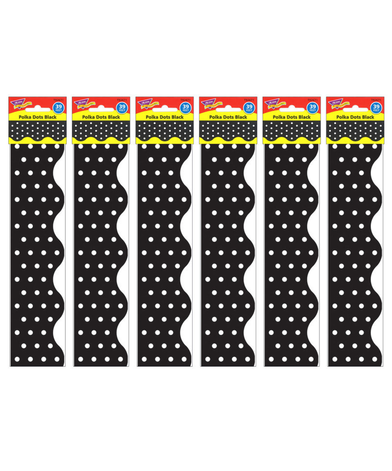 Present student work in style with these eye-catching trimmers! Add an extraordinary finishing touch to your bulletin board sets, announcements, and calendars. Use the patterns as-is or layer them to create dynamite trimmer crowns, frames, crafts, mobiles, and more. Hundreds of designs. Durable and reusable for your creative uses. Each pack includes 12 pieces measuring 2 1/4" x 39" for a total of 39 feet. Sold as 6 packs for a total of 234 feet of trimmer.
