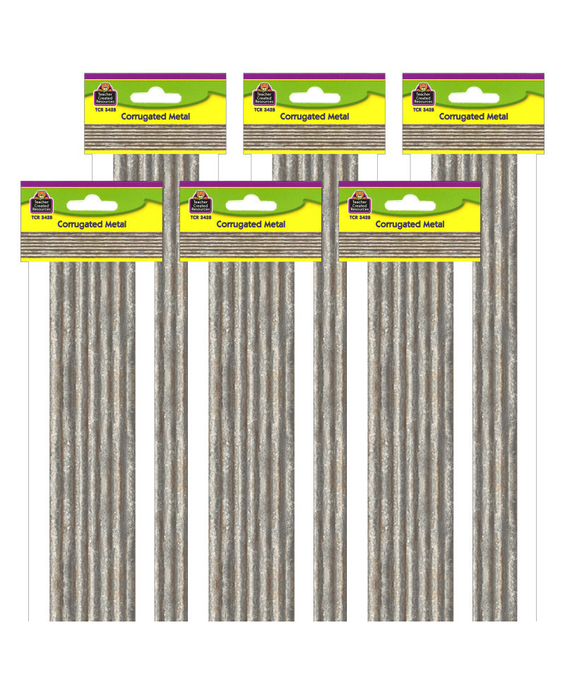 Use this Corrugated Metal Straight Border Trim to liven up your classroom! Create fresh looks for bulletin boards, windows, walls, and class projects. Mix and match with coordinating products (stickers, notepads, awards, etc.) for a classroom theme. Each pack has 12 pieces (3" x 35") for a total length of 35 feet of trim! Sold as a set of 6 packs, 72 pieces (210 feet) total.
