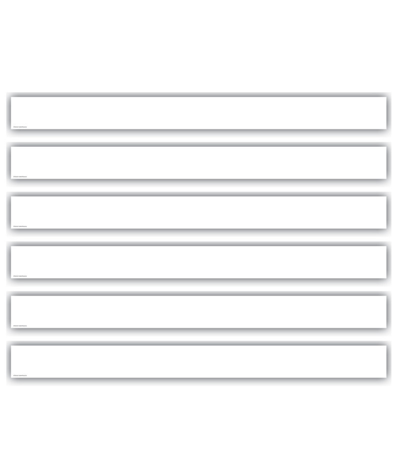 Use white border trim to liven up your classroom! Create fresh looks for bulletin boards, windows, walls, and class projects. Mix and match with coordinating products (stickers, notepads, awards, etc.) for a classroom theme or layer under a die-cut border to make it pop. Each piece is 35" x 3". Each pack includes 12 strips (35 feet). Sold as 6 packs for a total of 72 strips (210 feet).