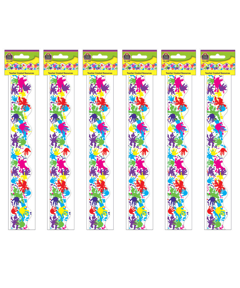 Use this colorful border trim to liven up your classroom! Create fresh looks for bulletin boards, windows, walls, and class projects. Layer them for extra impact. Or mix and match them with coordinating products (stickers, notepads, awards, etc.) to promote a classroom theme. Each pack has 12 pieces (2-3/16'' x 35'') for a total length of 35 feet of trim. Sold as 6 packs for a total of 72 strips (210 feet).
