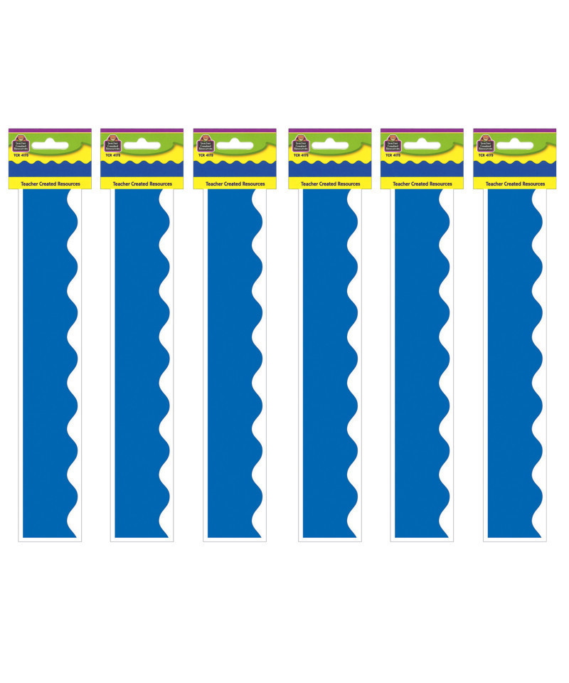 Use this colorful border trim to liven up your classroom! Create fresh looks for bulletin boards, windows, walls, and class projects. Layer them for extra impact. Or mix and match them with coordinating products (stickers, notepads, awards, etc.) to promote a classroom theme. Each pack has 12 pieces (2-3/16'' x 35'') for a total length of 35 feet of trim. Sold as 6 packs for a total of 72 strips (210 feet).