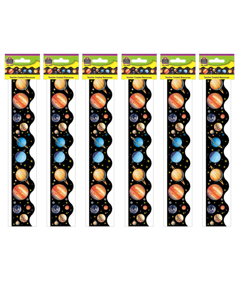 Use this colorful border trim to liven up your classroom! Create fresh looks for bulletin boards, windows, walls, and class projects. Layer them for extra impact. Or mix and match them with coordinating products (stickers, notepads, awards, etc.) to promote a classroom theme. Each pack has 12 pieces (2-3/16'' x 35'') for a total length of 35 feet of trim. Sold as 6 packs for a total of 72 strips (210 feet).