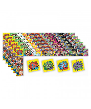 Use this colorful border trim to liven up your classroom! Create fresh looks for bulletin boards, windows, walls, and class projects. Layer them for extra impact. Or mix and match them with coordinating products (stickers, notepads, awards, etc.) to promote a classroom theme. Acid-free. Each strip is 35'' x 3''. Each pack includes 12 strips for 35 feet of trim. Sold as 6 packs for a total of 72 strips (210 feet).
