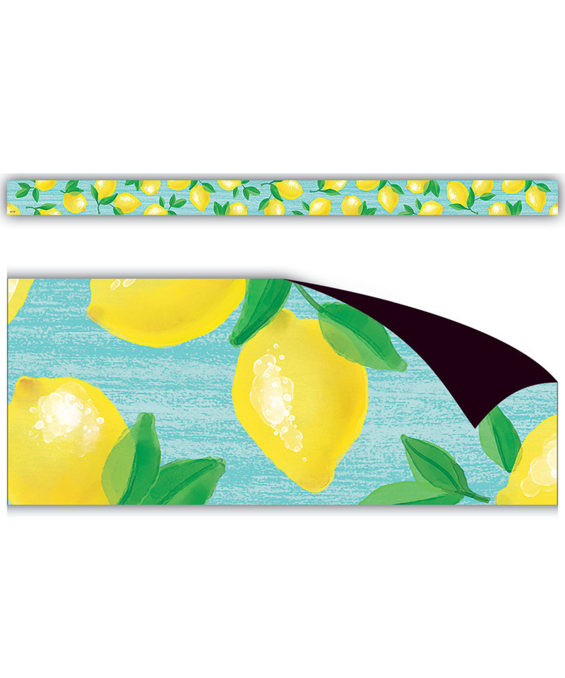 Decorate your whiteboard in a snap with these lemony, durable, magnetic borders! Add flair on other metal surface such as doors, desks, shelving, and bins. Cuts easily with scissors to make your own label or game pieces. Each magnetic border is 24" x 1-1/2". Each pack includes 12 pieces for a total of 24 feet.