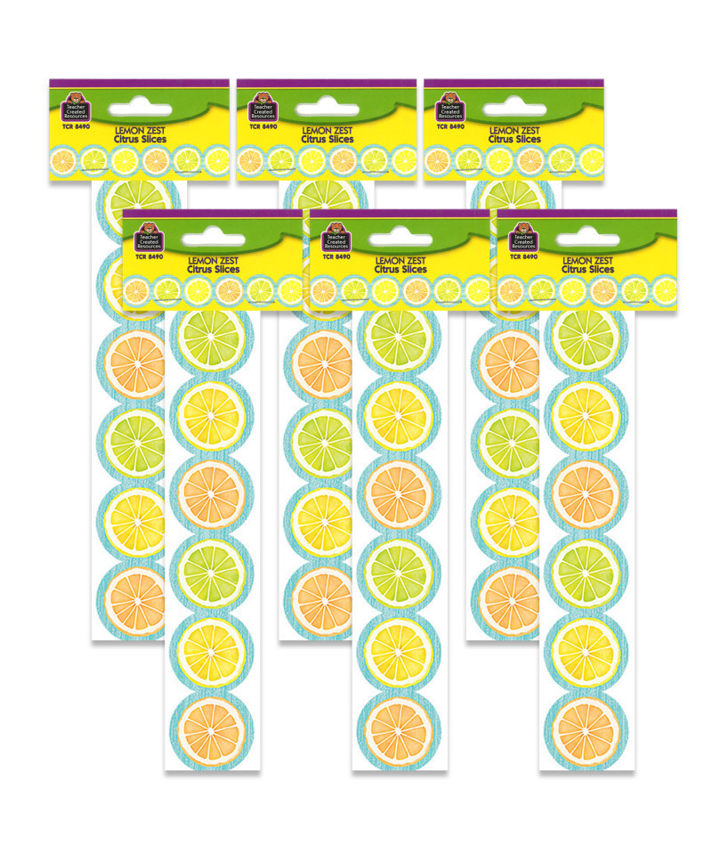 Use this colorful Lemon Zest Citrus Slices Die-Cut Border Trim to liven up your classroom! Create fresh looks for bulletin boards, windows, walls, and class projects. Mix and match with coordinating products (stickers, notepads, awards, etc.) for a classroom theme. Strips measure 2.75" x 35". Each pack includes 12 pieces for a total of 35 feet of border. Sold as 6 packs for a total of 72 strips (210 feet).