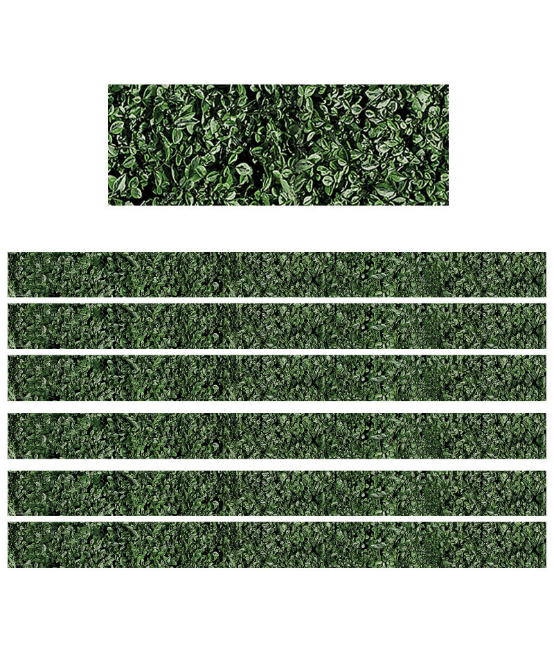 Use this boxwood border trim to liven up your classroom! Create fresh looks for bulletin boards, windows, walls, and class projects. Mix and match with coordinating products (stickers, notepads, awards, etc.) for a classroom theme. Each pack includes 12 strips for a total of 35 feet per pack. Sold as 6 packs for a total of 72 strips (210 feet).