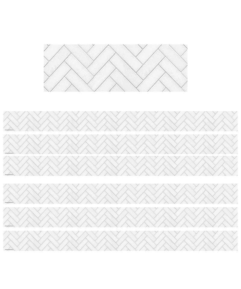 Use this herringbone border trim to liven up your classroom! Create fresh looks for bulletin boards, windows, walls, and class projects. Mix and match with coordinating products (stickers, notepads, awards, etc.) for a classroom theme. Each pack includes 12 strips for a total of 35 feet per pack. Sold as 6 packs for a total of 72 strips (210 feet).