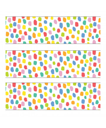 Use colorful border trim to liven up your classroom! Create fresh looks for bulletin boards, windows, walls, and class projects. Mix and match with coordinating products (stickers, notepads, awards, etc.) for a classroom theme. Each strip is 35'' x 3''. Each pack includes 12 strips for 35 feet of trim. Sold as 6 packs for a total of 72 strips (210 feet).