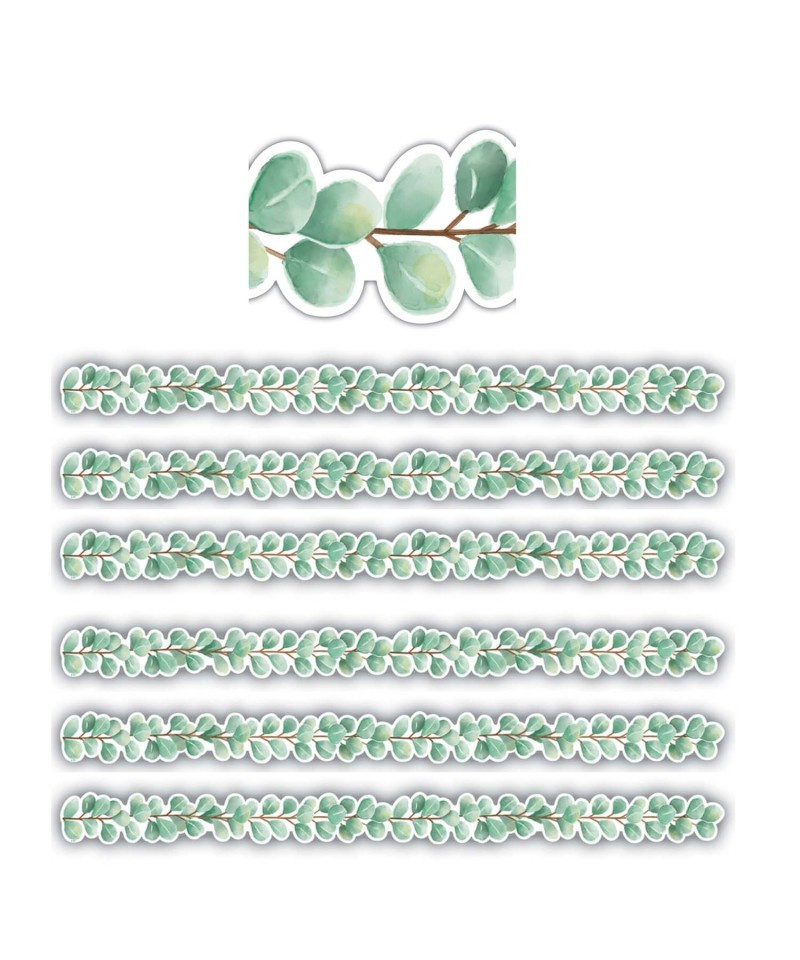 Use this fresh, leafy green border trim to liven up your classroom. Create unique looks for bulletin boards, windows, walls, and class projects. Mix and match with coordinating products (stickers, notepads, awards, etc.) for a classroom theme. Strips measure 2-3/4" x 35". Each pack includes 12 strips for a total of 35 feet per pack. Sold as 6 packs for a total of 72 strips (210 feet).