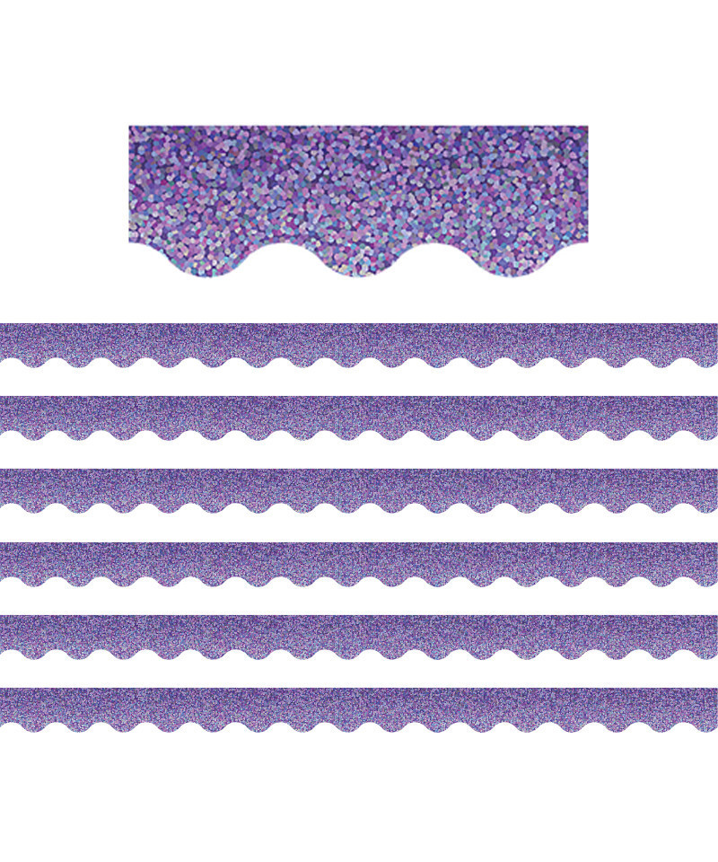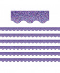 Add a little fun to your classroom with this beautiful Purple Sparkle Scalloped Border Trim. Use to frame student work, bulletin board displays, whiteboards, doors, or any place you want to add a little sparkle. Each pack includes 12 strips for a total of 35' of trim. Sold as 6 packs for a total of 72 pieces (210').