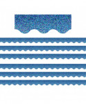 Add a little fun to your classroom with this beautiful Blue Sparkle Scalloped Border Trim. Use to frame student work, bulletin board displays, whiteboards, doors, or any place you want to add a little sparkle. Each pack includes 12 strips for a total of 35' of trim. Sold as 6 packs for a total of 72 pieces (210').