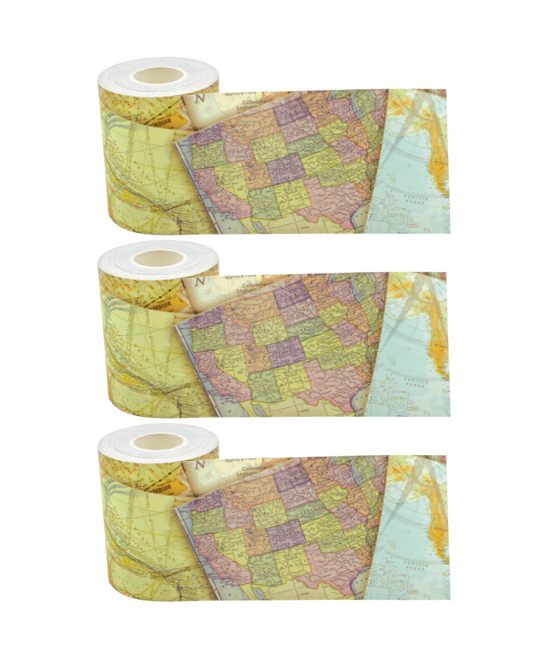 Teacher Created Resources® Travel the Map Straight Rolled Border Trim, 50 Feet Per Roll, Pack of 3