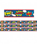Use this Superhero Straight Rolled Border Trim to liven up your classroom! Create fresh looks for bulletin boards, windows, walls, and class projects. Mix and match with coordinating products (stickers, notepads, awards, etc.) for a classroom theme. 50 foot continuous roll (3" x 50'). Sold as a pack of 3 rolls.