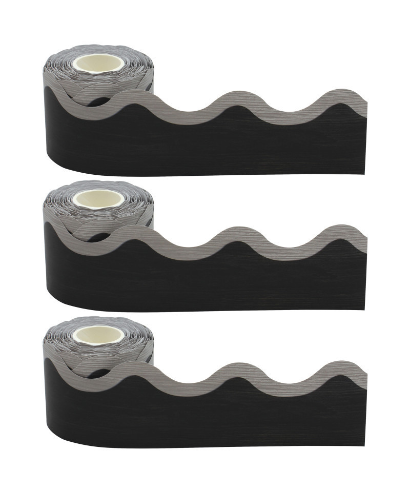 Teacher Created Resources® Modern Farmhouse Black with Gray Scalloped Rolled Border Trim, 50 Feet Per Roll, Pack of 3