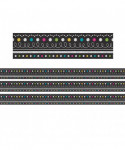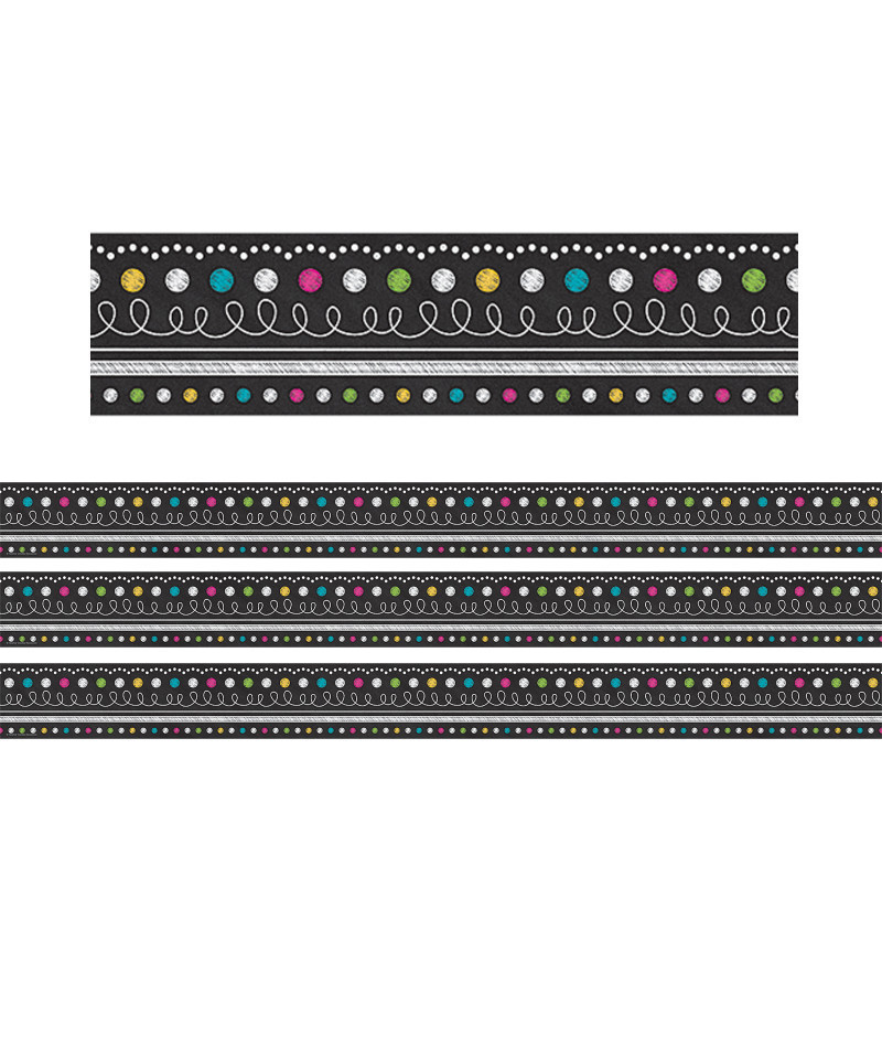 Use this Chalkboard Brights Straight Rolled Border Trim to liven up your classroom! Create fresh looks for bulletin boards, windows, walls, and class projects. Mix and match with coordinating products (stickers, notepads, awards, etc.) for a classroom theme. 50 foot continuous roll (3" x 50'). Sold as a pack of 3 rolls.