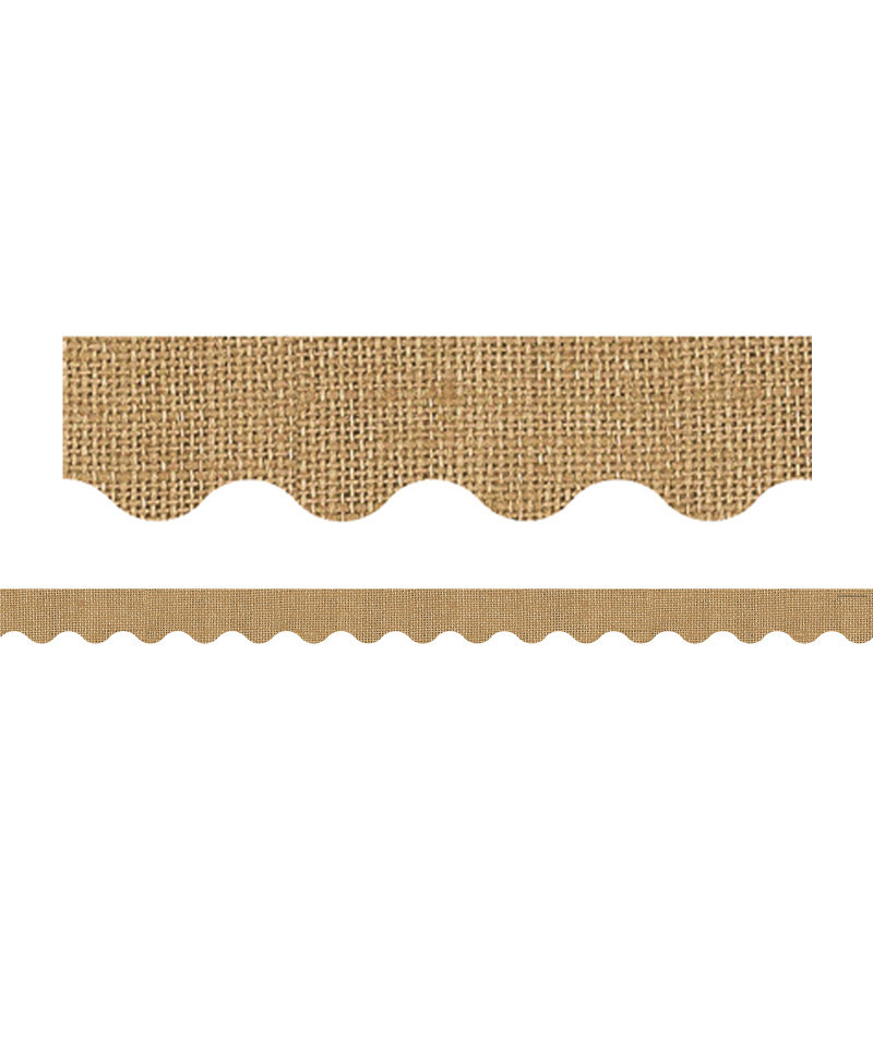 Use this Burlap Scalloped Rolled Border Trim to liven up your classroom! Create fresh looks for bulletin boards, windows, walls, and class projects. Mix and match with coordinating products (stickers, notepads, awards, etc.) for a classroom theme. 50 foot continuous roll. (2-3/16" x 50')