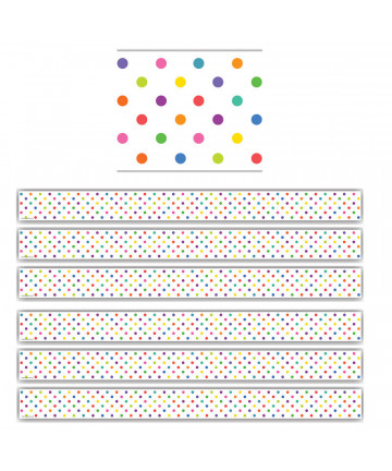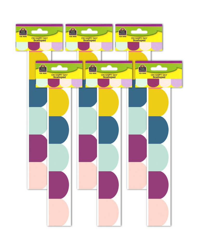 Use this colorful scalloped border trim to liven up your classroom! Create fresh looks for bulletin boards, windows, walls, and class projects. Mix and match with coordinating products (stickers, notepads, awards, etc.) for a classroom theme. Strips measure 35" x 2-3/16". Each pack includes 12 strips for a total of 35 feet. Sold as 6 packs for a total of 72 strips (210 feet).