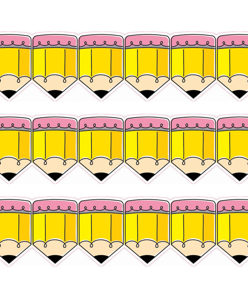 The chunky pencils on this Doodle Pencils EZ Border are a fun way to trim any bulletin board or display. Perfect for a variety of bulletin boards and classroom decoration themes, including those related to writing and early childhood. These new EZ borders come in smaller strips, which are easier to manage and store. Each package comes with enough borders to complete 2 full bulletin boards. Each pack includes (24) 3" x 24" strips for a total of 48 feet per package. Sold as 3 packs for a total of 72 strips (144 feet).