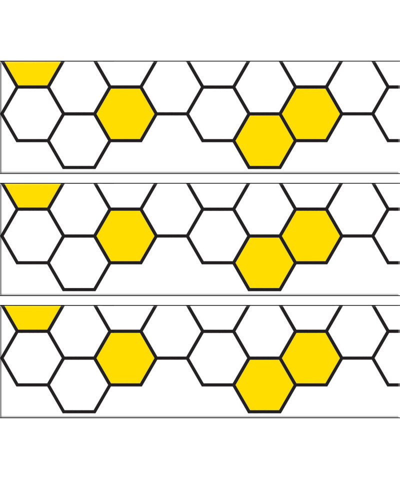 Dress up bulletin boards, rooms, hallways, and common areas with this Honeycomb EZ border. This versatile border is especially great with bee-themed displays. These new EZ borders come in smaller strips, which are easier to manage and store. Each package comes with enough borders to complete 2 full bulletin boards. Each pack includes (24) 3" x 24" strips for a total of 48 feet per package. Sold as 3 packs for a total of 72 strips (144 feet).