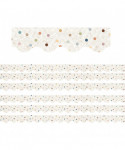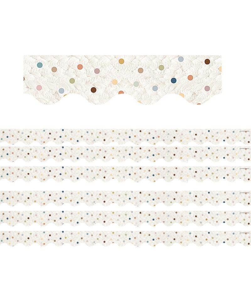 Use scalloped border trim to liven up your classroom! Create fresh looks for bulletin boards, windows, walls, and class projects. Mix and match with coordinating products (stickers, notepads, awards, etc.) for a classroom theme. Each pack includes 12 pieces (approximately 2-3/16" x 35") for a total length of 35 feet of trim! Sold as 6 packs for a total of 72 strips (210 feet) total.