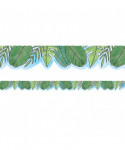 This Jumbo Leaves EZ Border features assorted styles of green safari leaves with a light blue sky background. These colorful leaves will complement a wide variety of bulletin board displays and classroom decoration themes, including those related to animals, science, plants, nature, jungle, zoo, and more. These EZ borders come in smaller strips, which are easier to manage and store. Each package comes with enough borders to complete 2 full bulletin boards. Each pack includes 24 strips, each measuring 2-3/4" x 24", for a total of 48 feet per pack.