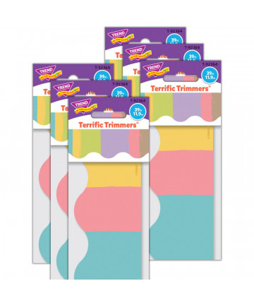 Use colorful border trim to liven up your classroom! Create fresh looks for bulletin boards, windows, walls, and class projects. Mix and match with coordinating products (stickers, notepads, awards, etc.) for a classroom theme. Each pack includes 12 pieces, about 35 feet of trim per pack.