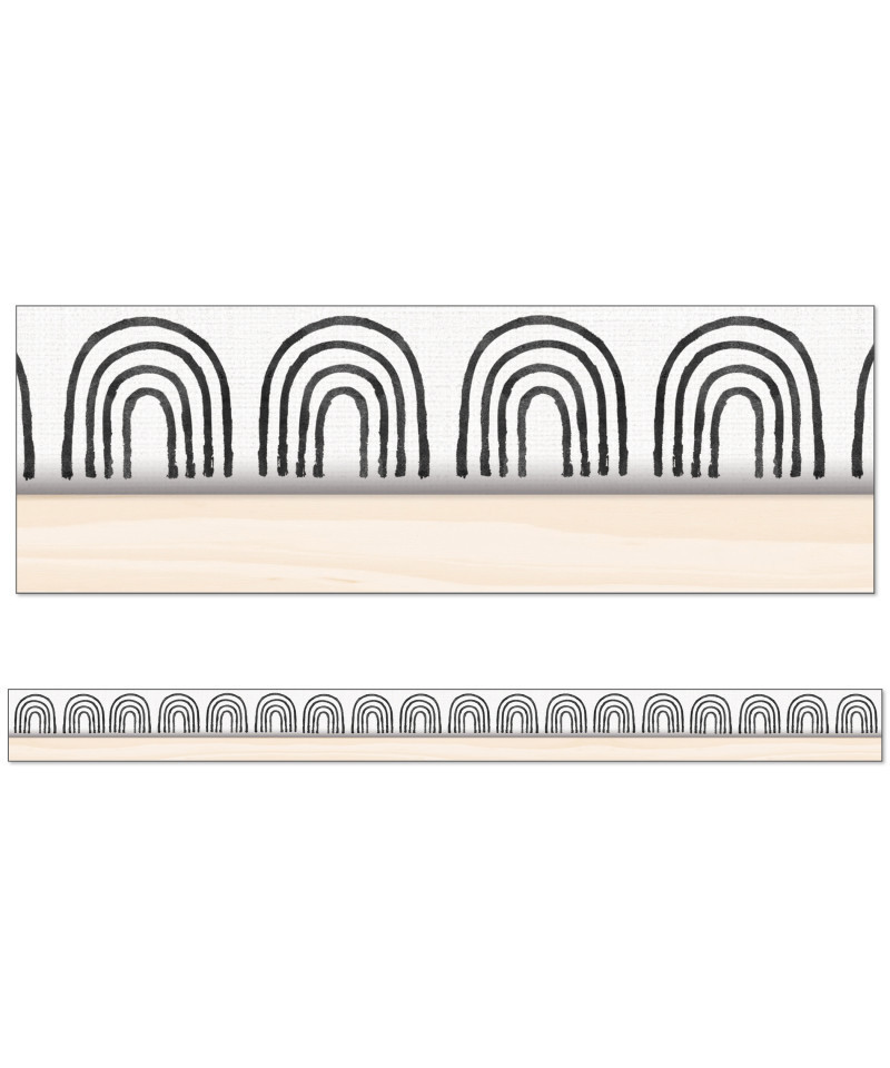Add a rainbow of style to your learning space using Carson Dellosa Creatively Inspired Boho Rainbow Bulletin Board Borders—perfect for bulletin board, white board, cork board, and other rainbow classroom décor. The neutral classroom borders set includes 12 strips of straight, white bulletin border with black rainbows and a light wood to add to any muted colors classroom theme or boho neutral classroom décor. Boho rainbow classroom borders are a great addition to year-round party, black board, locker, and desk décor, office décor, as well as St. Patrick's Day or spring and summer bulletin board decorations. Each strip of bulletin board border measures 3' x 3" for a total of 36 feet for door, cubby, chalkboard, and wall décor that compliments a muted color classroom theme and other black and white decor or boho rainbow classroom décor. The Creatively Inspired collection, designed by Stephanie and Loreal of @HappilyEverElementary, partnered with Carson Dellosa to help create a vibrant, positive, and creative environment that inspires students to learn.