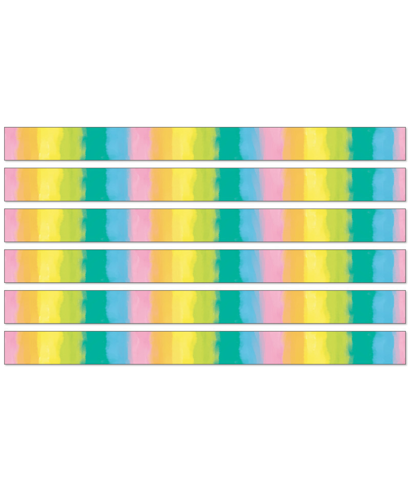 Add a rainbow of color to your learning space using Carson Dellosa Creatively Inspired Watercolor Rainbow Bulletin Board Borders—perfect for bulletin board, white board, cork board, and other rainbow classroom décor. Each bulletin board decorations set includes 12 strips of straight, watercolor rainbow bulletin border to add to any boho rainbow classroom theme. Boho rainbow classroom borders are a great addition to year-round party, black board, locker, and desk décor, office décor, as well as spring and summer bulletin board decorations. Each strip of bulletin board border measures 3' x 3" for a total of 36 feet per pack to decorate your boho rainbow classroom door, cubby, chalkboard, and wall décor with ease. Sold as 6 packs for a total of 72 strips (432 feet).
