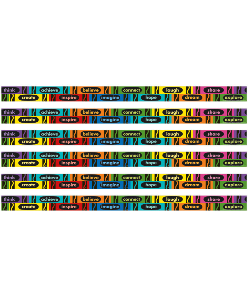 Use Eureka School Deco Trim® to add a finishing border to your displays, windows, doorways or chalkboards. Vibrant colors plus a variety of styles and themes can add creativity to displays, windows, chalkboards and more. Each pack includes 12 strips, each measuring 2-1/4" x 37" for a total of 37 feet! Sold as 6 packs for a total of 72 strips (222 feet).