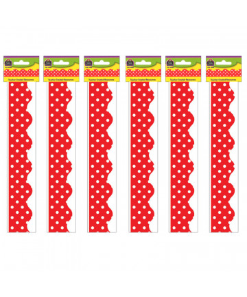 Use colorful border trim to liven up your classroom! Create fresh looks for bulletin boards, windows, walls, and class projects. Mix and match with coordinating products (stickers, notepads, awards, etc.) for a classroom theme. Each pack includes 12 pieces, about 35 feet of trim per pack. Sold as 6 packs for a total of 72 strips (210 feet).